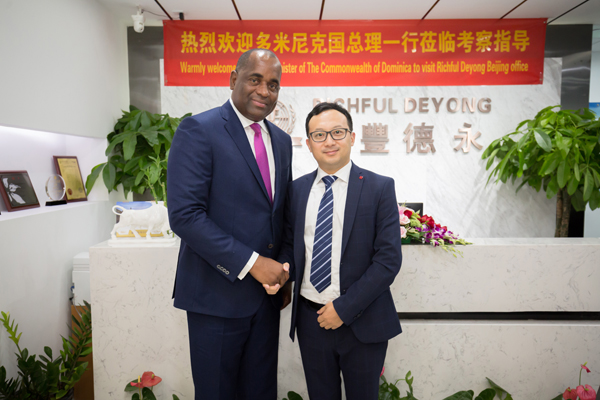 瑞豐德永集团运营总监及移民部负责人龚彦斌先生与多米尼克总理罗斯福·斯凯里特先生合影