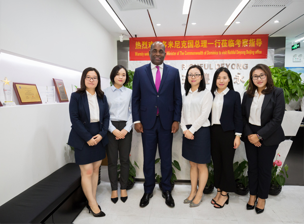 多米尼克总理罗斯福· 斯凯里特先生一行参观了位于北京IFC大厦的瑞豐德永集团北京公司,并与集团代表举行了双边交流会谈。瑞豐德永集团华北区域总经理孟庆坤女士介绍了瑞豐德永的创业历程、服务模式、业务形态及发展方向。