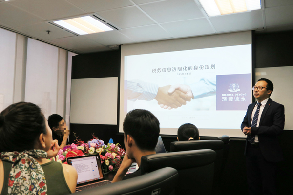 集团营运总监龚彦斌先生为客户介绍如何获得香港合法居留身份﹑香港移民新政及税务信息透明化的身份规划,并举例说明新趋势下的应对策略,广受客户欢迎。