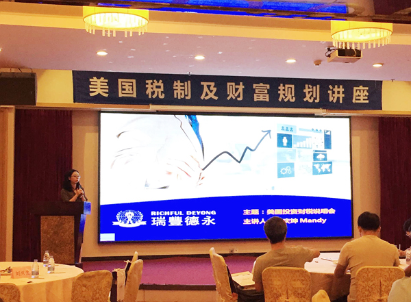 瑞豐德永集团华北区域总经理、集团专家团队成员孟庆坤女士透彻地分析了美国税制的优势及注意事项,分享了美国投资的案例及切身经验,讲解了美国公司设立的流程和主要税务环境,受到了客户热烈欢迎。
