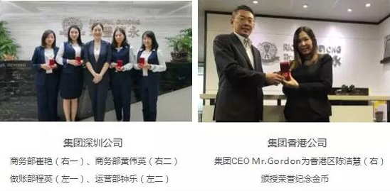 集团董事长陈洪松先生为首席财务官何阿会女士颁授荣誉金币