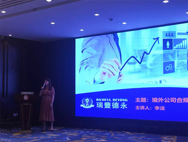 会上,瑞豐德永集团华东区域总经理李洁女士就目前新形势下企业合规运营所面临的突出问题展开了深入浅出的解读和分析。她指出,现阶段境内税务监管越来越严格,个人、企业大额交易也将纳入统一监管;对外投资要符合国家产业政策,境外公司合规化已是必行之策。