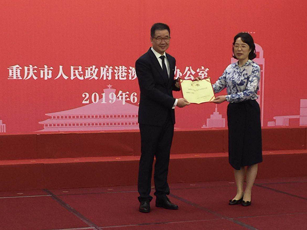 ▲ 重庆市副市长潘毅琴女士为瑞丰德永集团高级顾问麦先生颁发证书