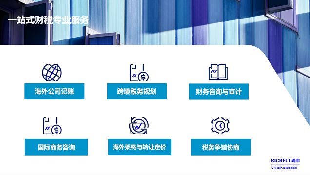 RICHFUL瑞丰财税交付服务团队基于其全球服务网络以及丰富的实务经验,协助不同国际化阶段的中国企业结合战略、商业、法律、合规等综合因素,帮助企业在海外发展进程中作出最优化的税务考量。