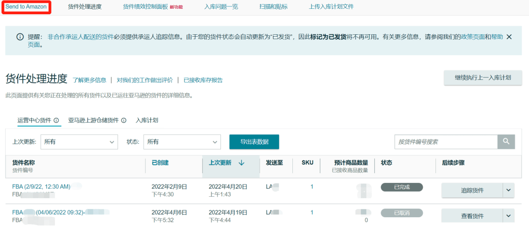 在发送库存到亚马逊运营中心之前,卖家需要在卖家平台创建货件,而“发送至亚马逊”(Send to Amazon,或STA)正是亚马逊物流(FBA)全新的创建货件的操作流程。